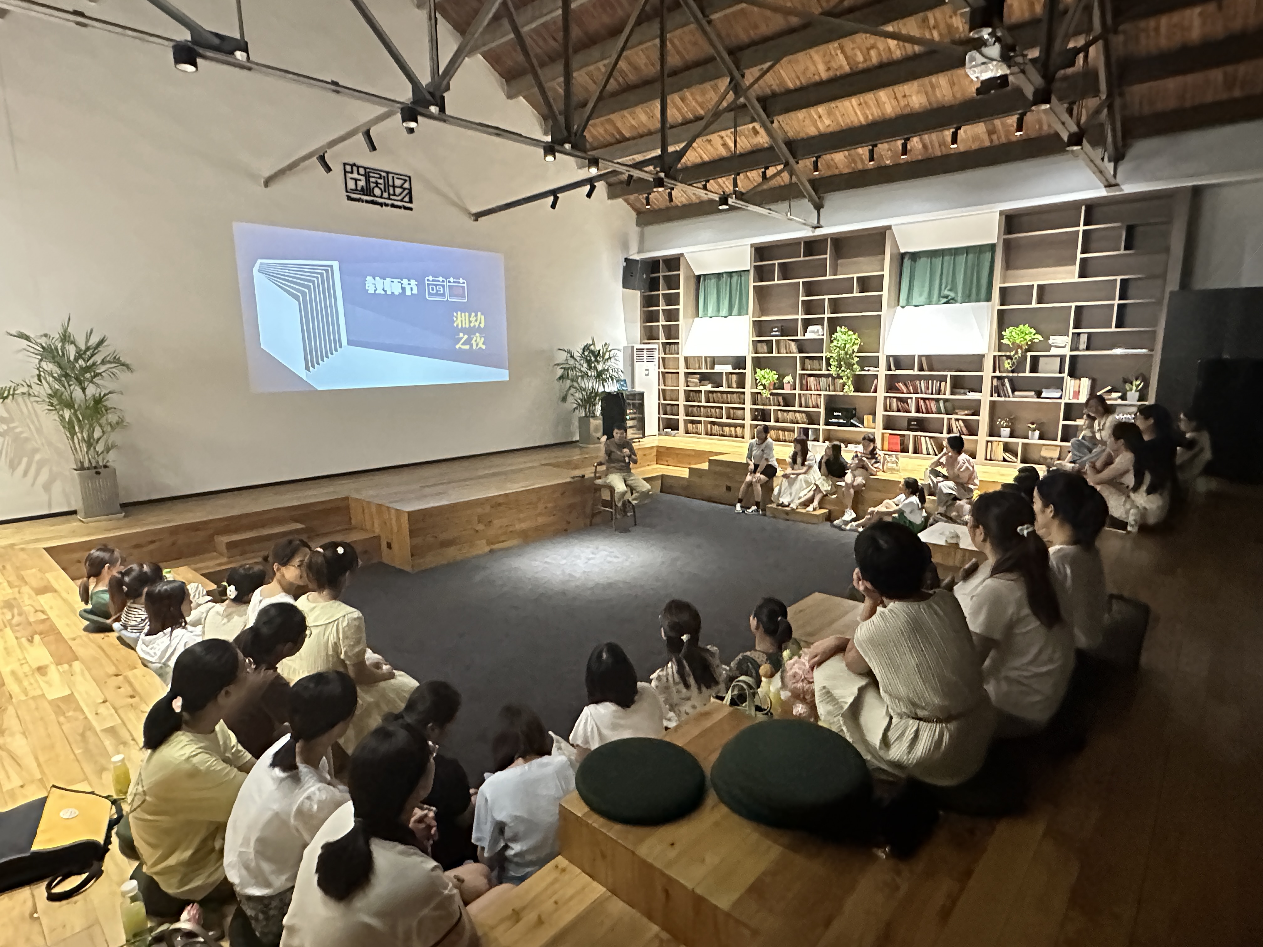 听最熟悉的人讲故事,别有一番“味道”;本次活动邀请了钱佳音老师在“湘幼之夜”讲关于教育的故事,钱老师从父母与孩子、教师与孩子、自我与社会以及自我与本我四方面展开,用一个个小故事讲有深度的人生观;一句“我在意你”更是让在座老师豁然开朗,“温柔的呵护,严肃的呵斥,眼前遍布预感,内心充满责任”,这不正是每一位幼教者前行路上的箴言吗?