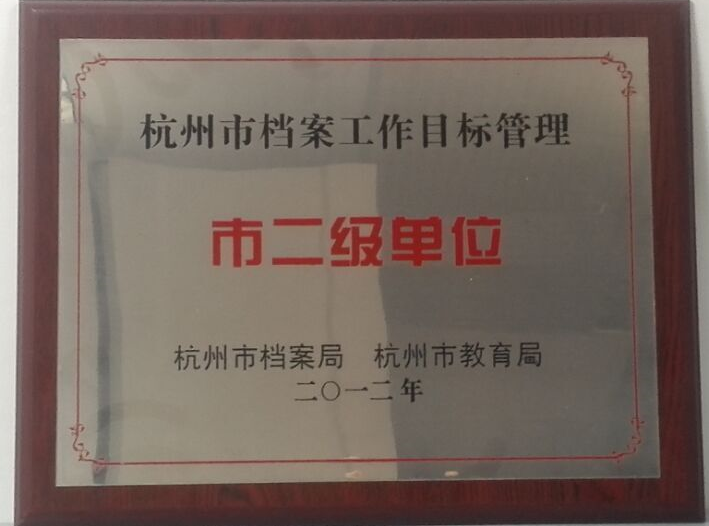 湘湖幼儿园2012年被评为杭州市二级档案目标管理单位