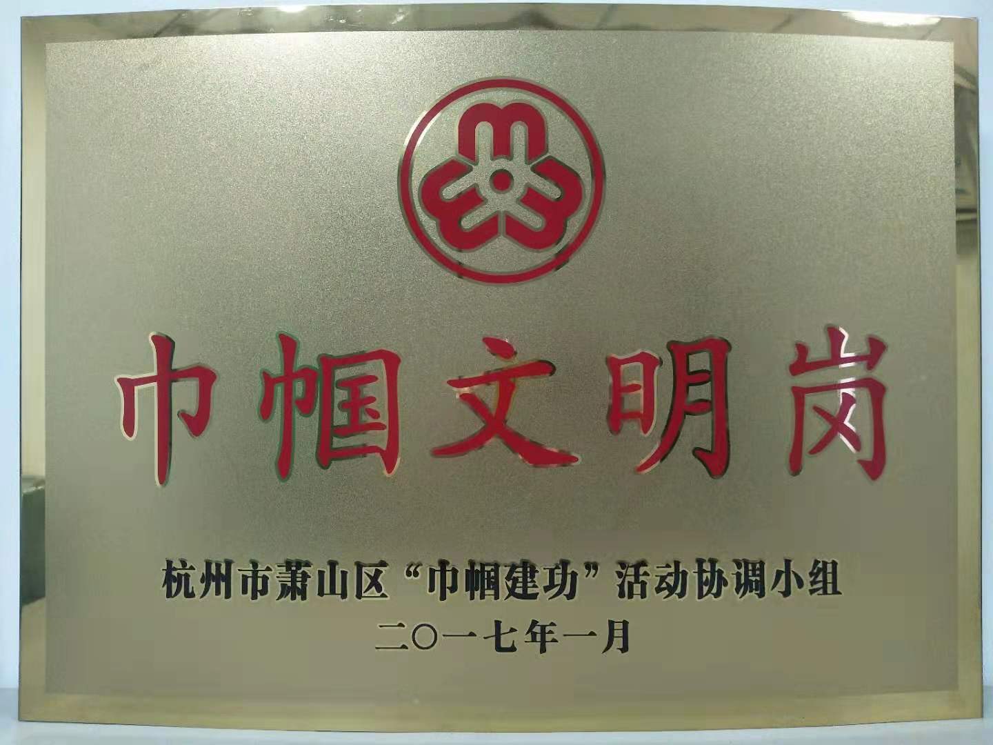 萧山区湘湖幼儿园2016年度获区巾帼文明岗奖牌