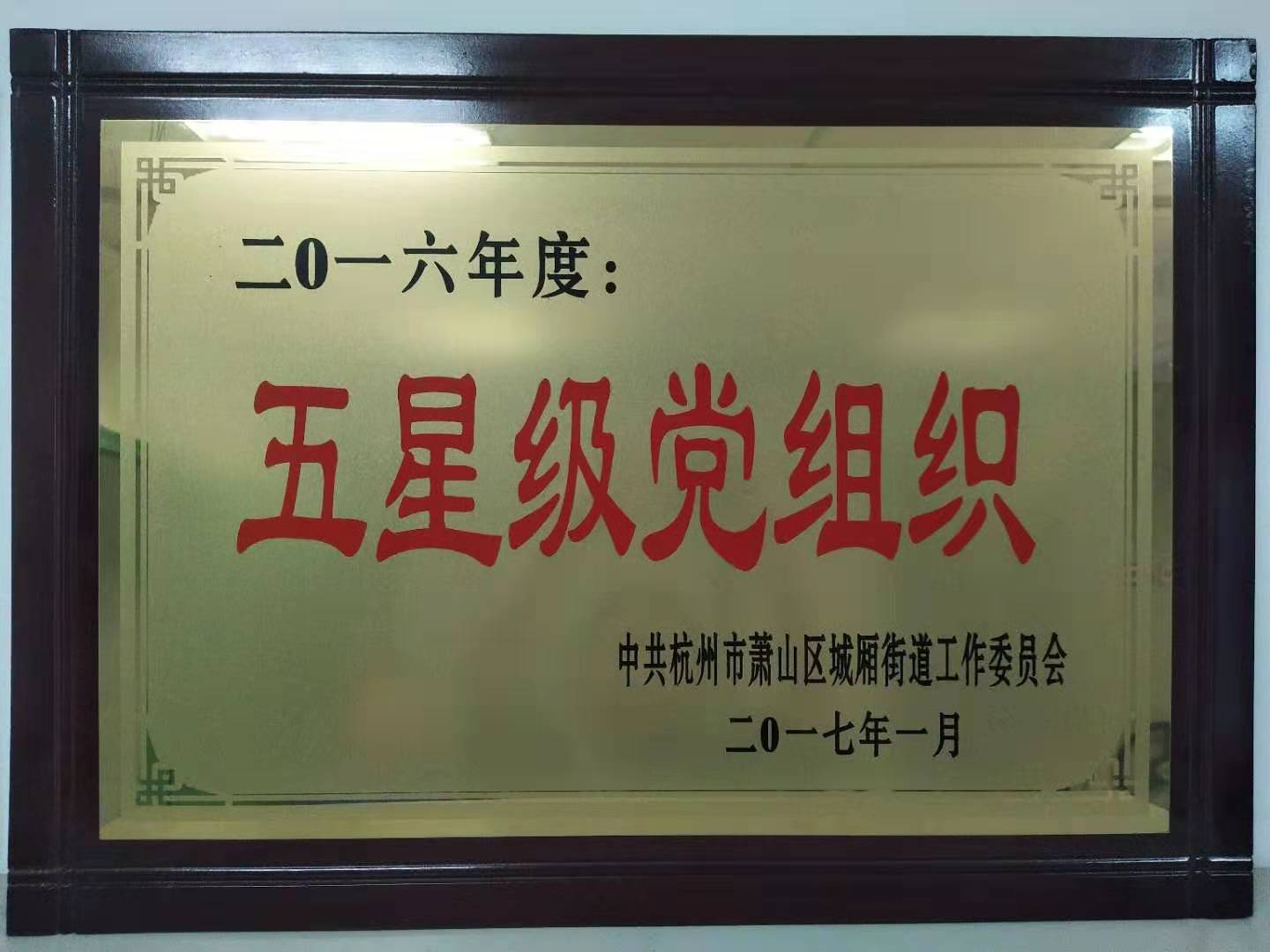 萧山区湘湖幼儿园2016年度五星级党组织奖牌