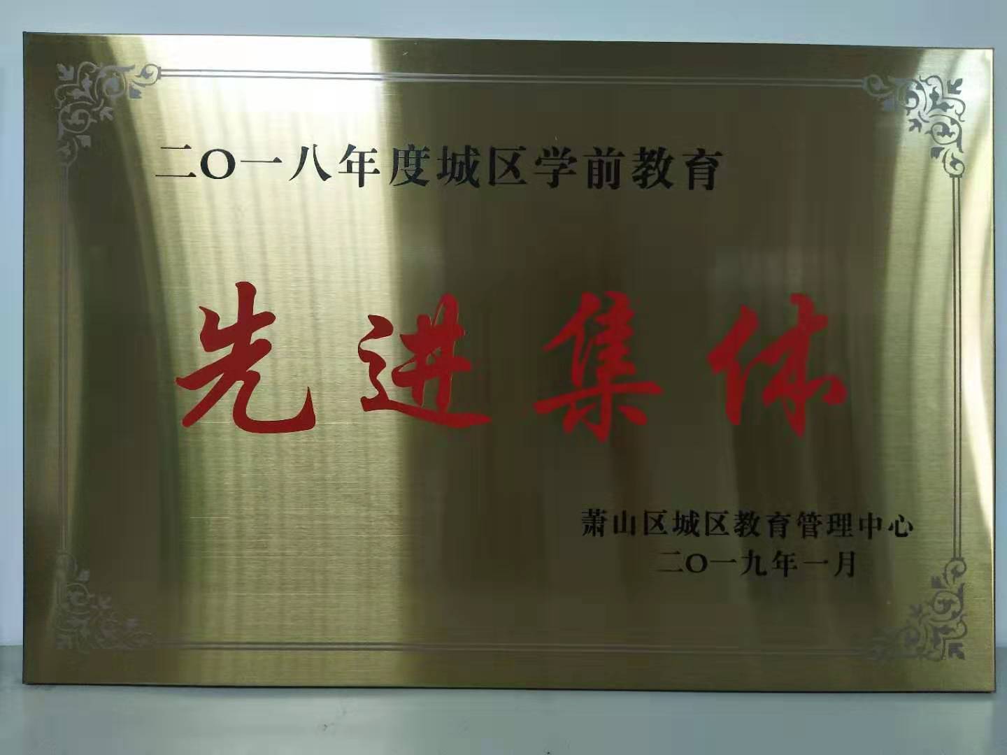 萧山区湘湖幼儿园2018年度城区学前教育先进集体奖牌