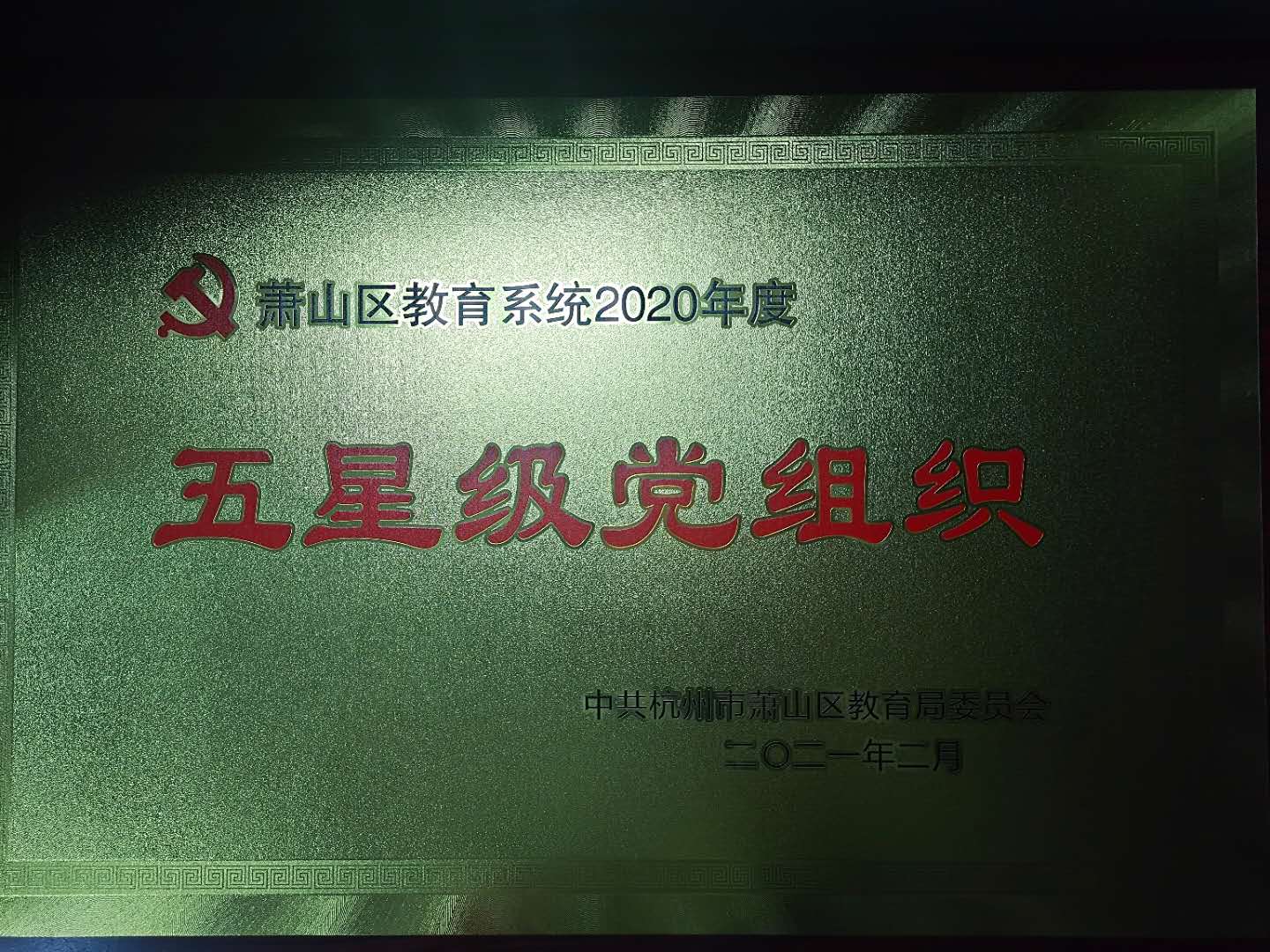 萧山区2020年度教育系统五星级党组织牌匾