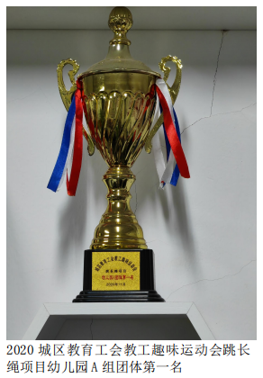 萧山区湘湖幼儿园2020年城区教育工会教工运动会跳长绳项目幼儿园A组团体第一名奖杯