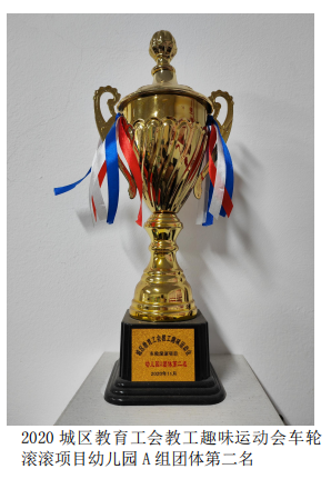 萧山区湘湖幼儿园2020年城区教育工会教工运动会车轮滚滚项目幼儿园A组团体第二名奖杯