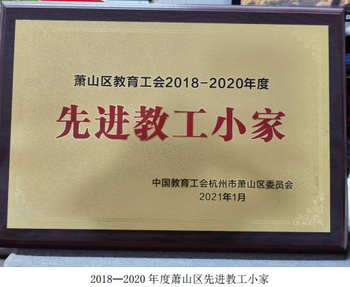萧山区湘湖幼儿园获“萧山区教育工会2018-2020年度先进教工小家”牌匾