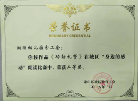 湘湖幼儿园分工会朗读作品《功勋礼赞》城区二等奖荣誉证书